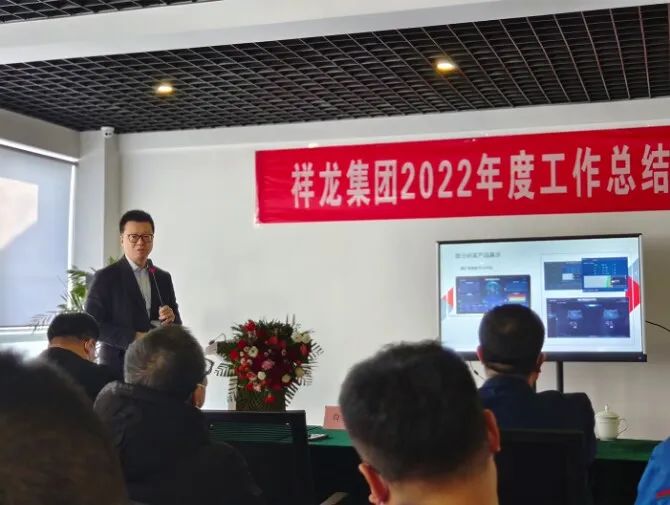 会上,总经理白光星与全体同事从六个方面一起回顾了公司2022年度经营成果、发展业绩与高光时刻,并展示和分析了公司今年的各项经营指标,对祥龙集团的未来发展做了展望。